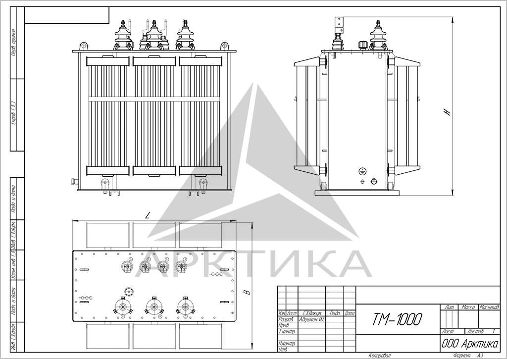 Силовой масляный трансформатор ТМ-1000 мощностью 1000 кВА с маслорасширительным баком предназначен для понижения напряжения с 35кВ; 20кВ; 10кВ; 6кВ; до 0,4 кВ. Производство следующих моделей: ТМ - 1000/6-0,4; ТМ-1000/10-0,4; ТМ-1000/20-0,4; ТМ- 1000/35-0,4.