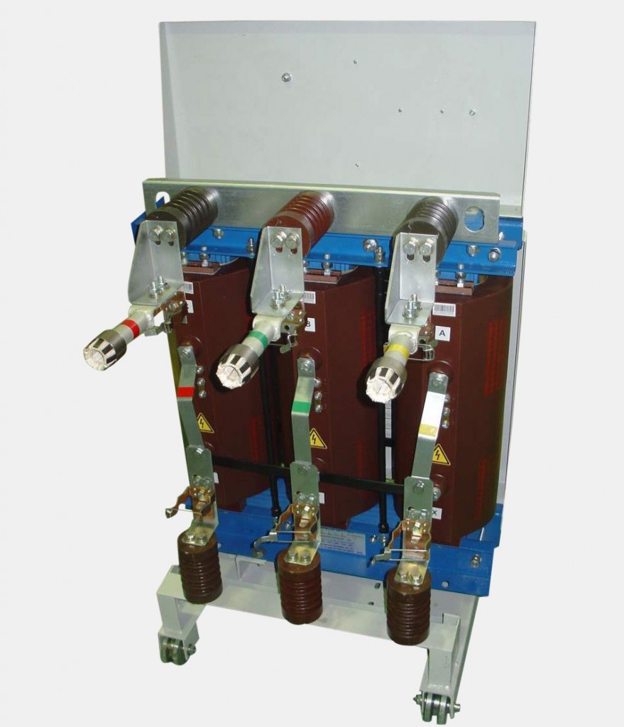 Элемент выполнен в виде выкатного модуля, который легко перемещается по направляющим, позволяя быстро подключать или отключать цепи высокого напряжения без демонтажа оборудования. Корпус изготовлен из прочной стали с антикоррозийным покрытием, что гарантирует долговечность и защиту от внешних воздействий.